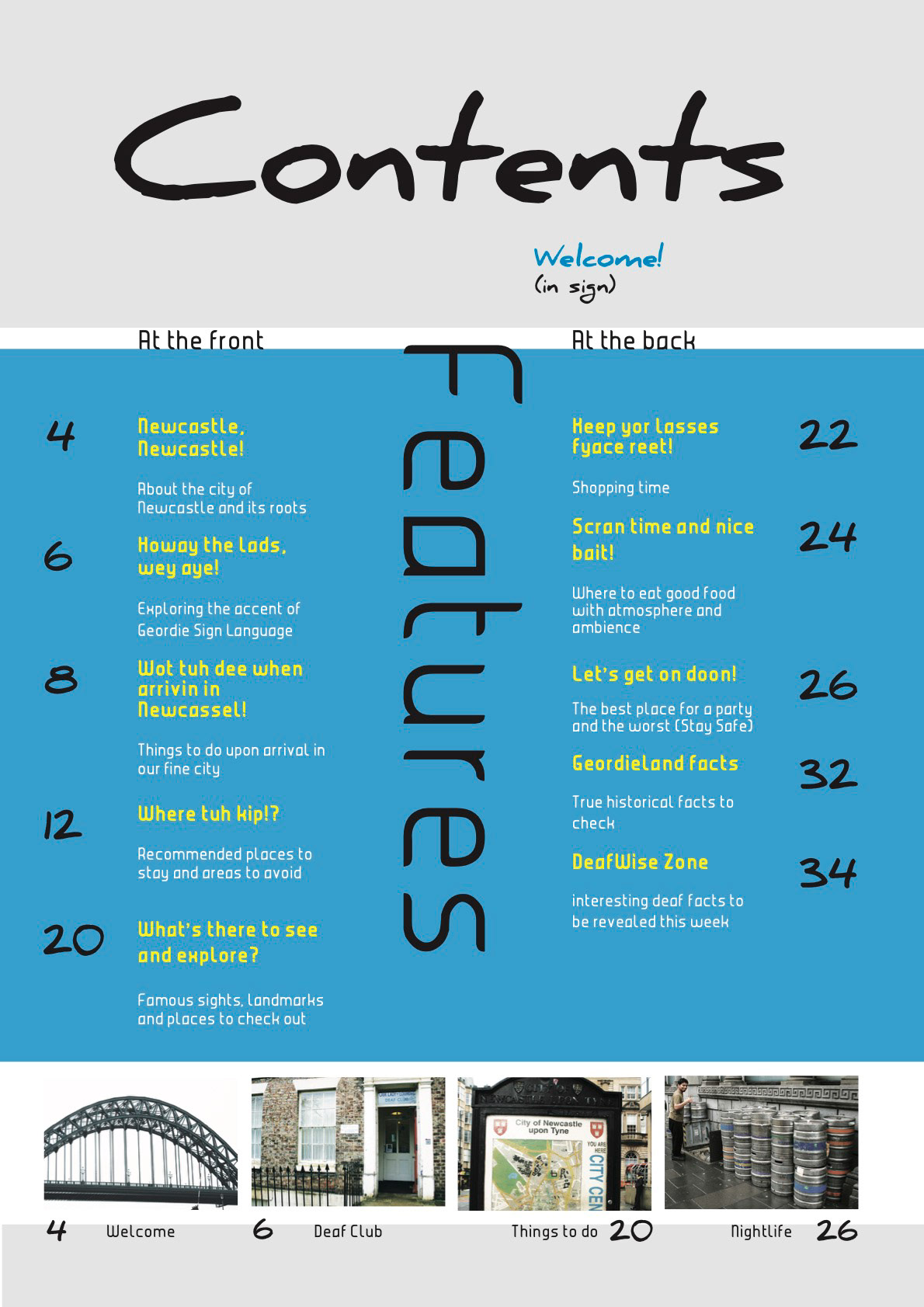 A local magazine for the proud Geordies and deaf people, a guide about Newcastle - what to do, eat and explore as well as in Geordies signs in BSL, because sign language is simply beautiful.